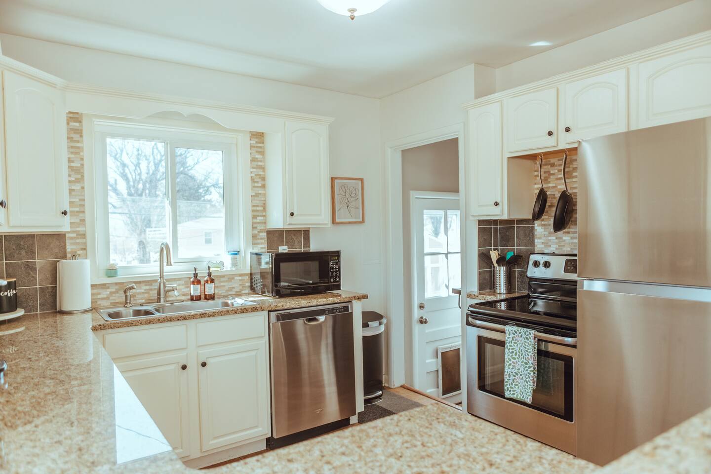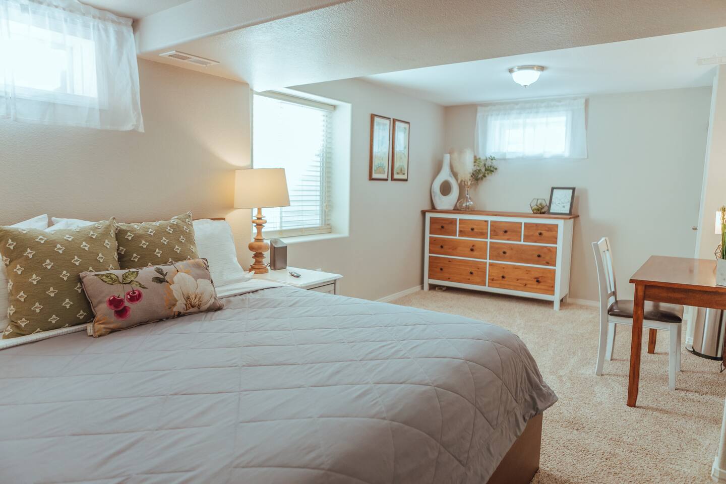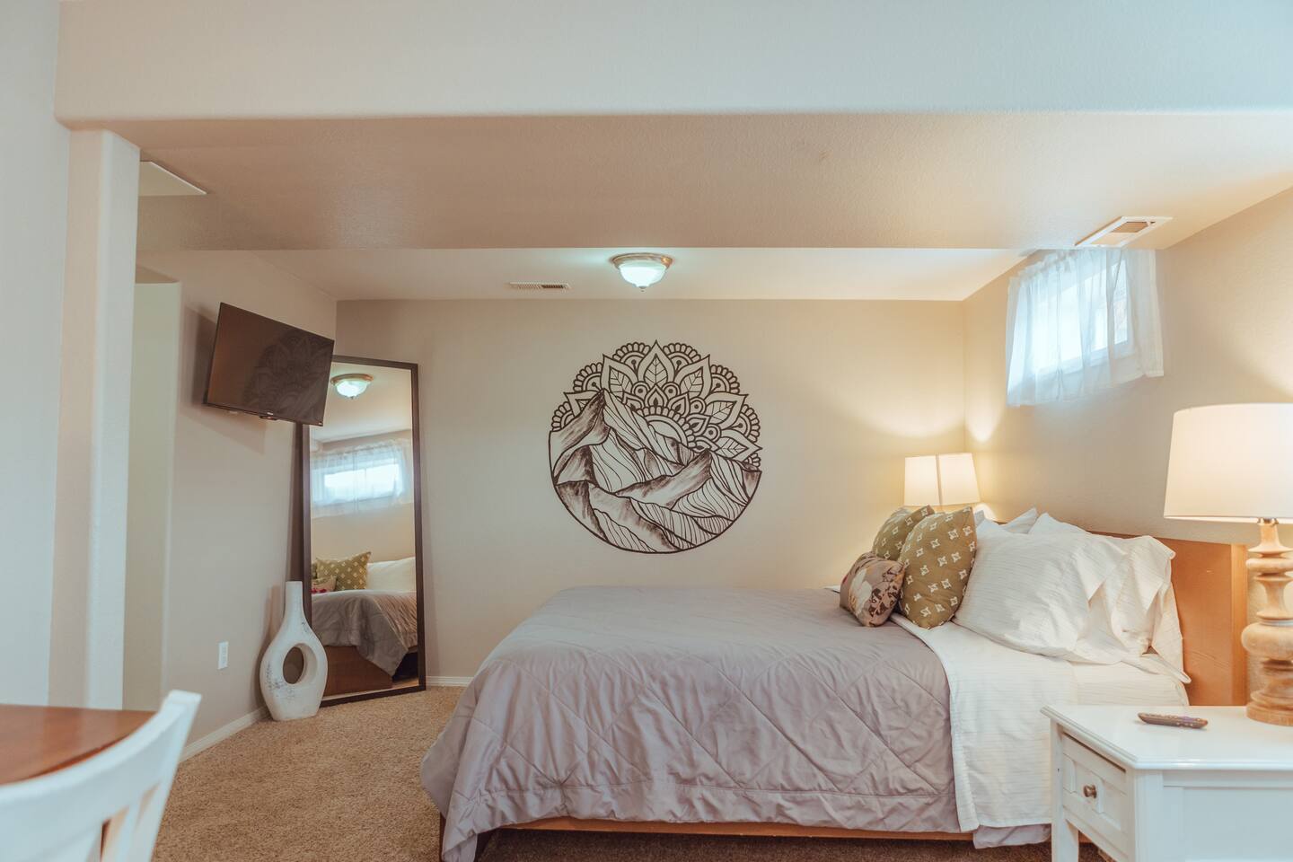 Located in a quiet, family-friendly neighborhood just 5 minutes from downtown, this home is perfect for groups looking to stay central while having space to relax. With two separate living areas, everyone has room to spread out. The main level is ideal for gathering, with an open kitchen, dining space, and living area. The lower level features a private primary suite with a full bathroom, dedicated workspace, and a cozy movie lounge with a reclining couch and 55” TV. You’re also just minutes from Patty Jewett Golf Course and close to many of Colorado Springs’ top attractions. Outdoor Living The fully fenced backyard is designed for relaxing after a day of exploring and spending time together. Enjoy the private hot tub, built-in gas fire pit, and BBQ grill. Family-Friendly Amenities Traveling with little ones? We’ve got you covered with a pack ’n play, highchair, kids’ dishes, toys, and books. Parking Private driveway for 2 vehicles, plus additional free street parking directly in front of the home.